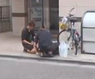 彼は中身をビニール袋内にこぼしてしまった様子。